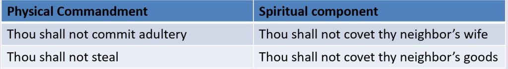 Where St. Augustine varied from the Jews was to not have a separate commandment of “I am the Lord your God who brought you out of slavery in Egypt” – he viewed that was all part of the first commandment as well (the Protestant and Orthodox version list part of it as a “preamble”). And Augustine utilized the fuller text in Scripture and separated the tenth commandment in the Jewish numbering system into two commandments, which the Jews simply stated as “You shall not covet.” The first part, which becomes the ninth commandment is the command to not covet your neighbor’s wife. The second part, which becomes the tenth commandment is the command to not covet your neighbor’s goods.
