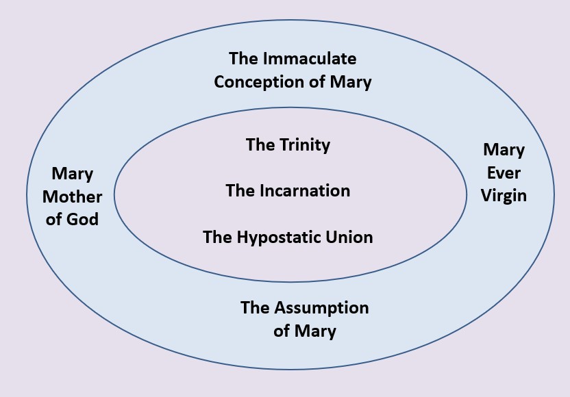 I have heard the phrase used the Marian dogmas are like the moat that surrounds the castle. When I look at the picture above, I do sometimes wonder if there is some truth in that thought. When Protestantism is embraced by many in the sixteenth century, its foundational premise is the Catholic Church is wrong about key aspects of the faith. Much of the “battleground” has occurred around the Marian dogmas. Yet those key Christological truths have been retained by most Christians.
